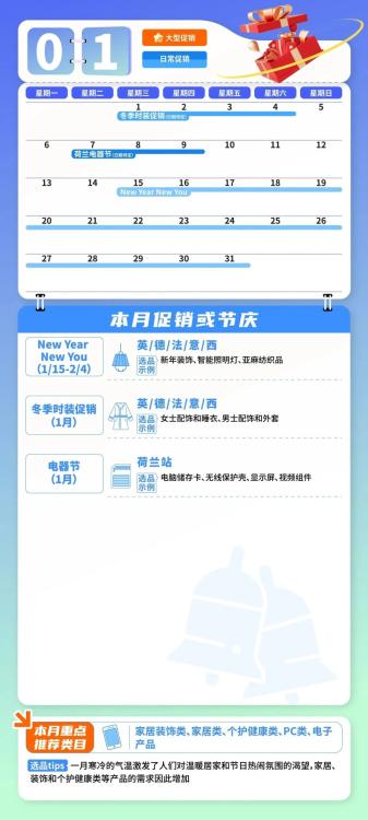 旺季概覽 大促時間表 黑五網一活動:2024年11月21日至12月2日 活動持續(xù)時間:12天,創(chuàng)歷屆…
